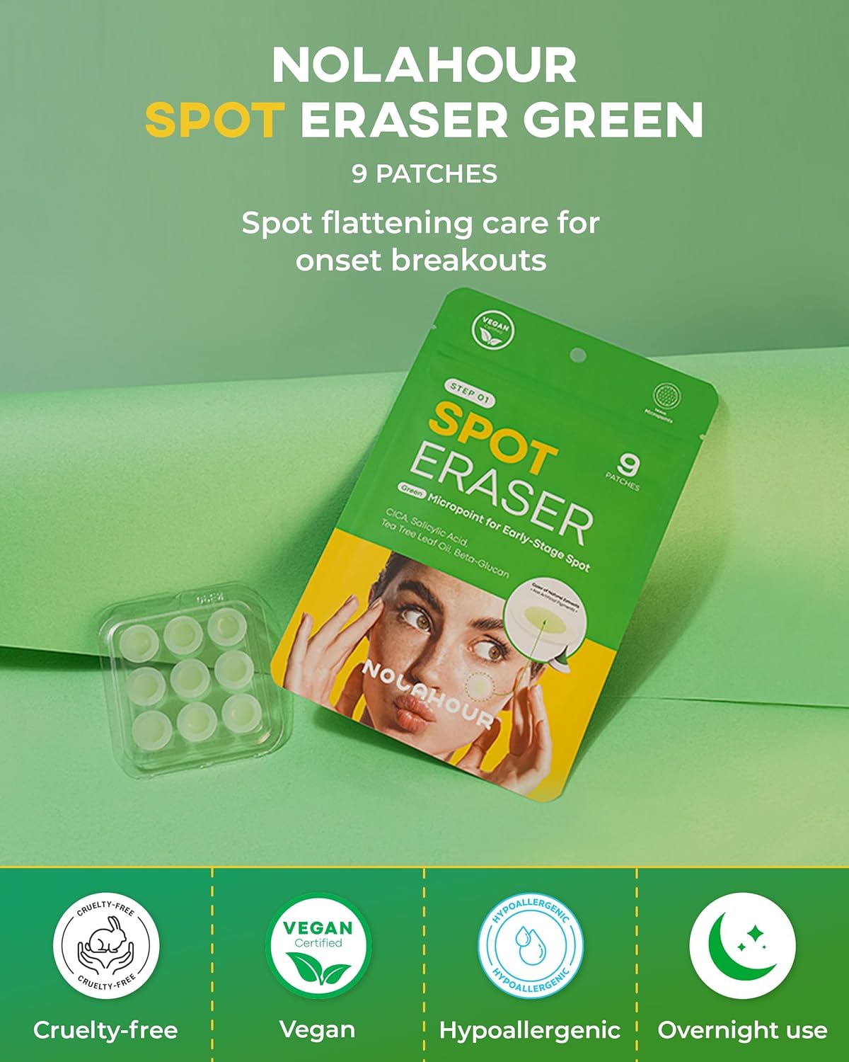 مزيل البقع من NOLAHOUR باللون الأخضر للبقع المبكرة - بقع البثور والبقع الداكنة للوجه | ملصقات إزالة البقع الداكنة للوجه