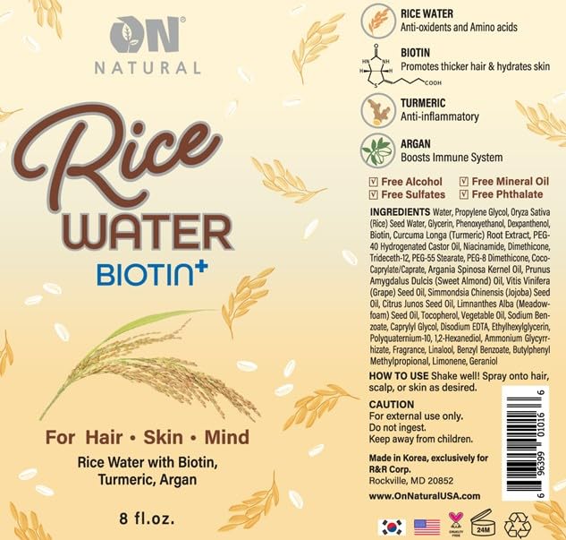 رذاذ ماء الأرز البايوتين للوجه والشعر لترطيب طوال اليوم من اون ناتشورال